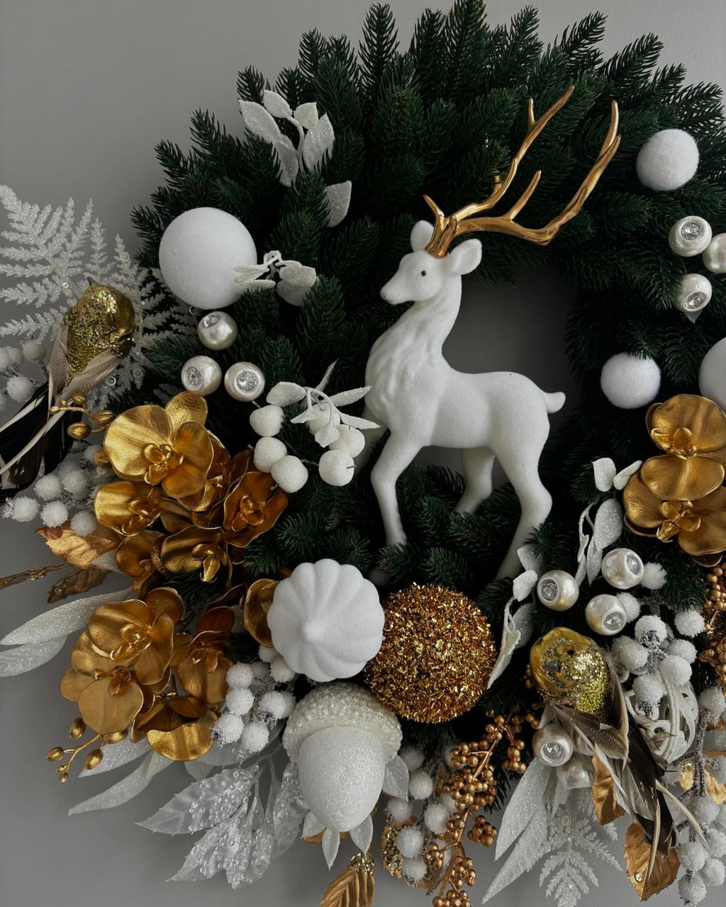 Decore sua entrada com o nossa deslumbrante Kit Natalino! Feita com uma mistura exuberante de folhagens verdes frescas, esta guirlanda é adornada com brilhos sutis, pinhas rústicas e laços vermelhos vibrantes. As luzes LED delicadamente entrelaçadas criam um efeito mágico, iluminando a sua porta com um calor acolhedor. Com um toque de moda e tradição, esta guirlanda é perfeita para dar as boas-vindas aos seus convidados e trazer o espírito natalino.